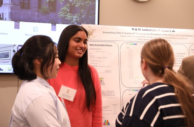 Mirina Im ’26, Veda Kalidindi ’26, Ella Rischard ’26 and David Severns ’28 worked within the Anthologies-Canons Lab overseen by mentor Arthur Knight, associate professor and chair of English, to bring data science into dialogue with the African American literary canon, assessing its construction and its impact.